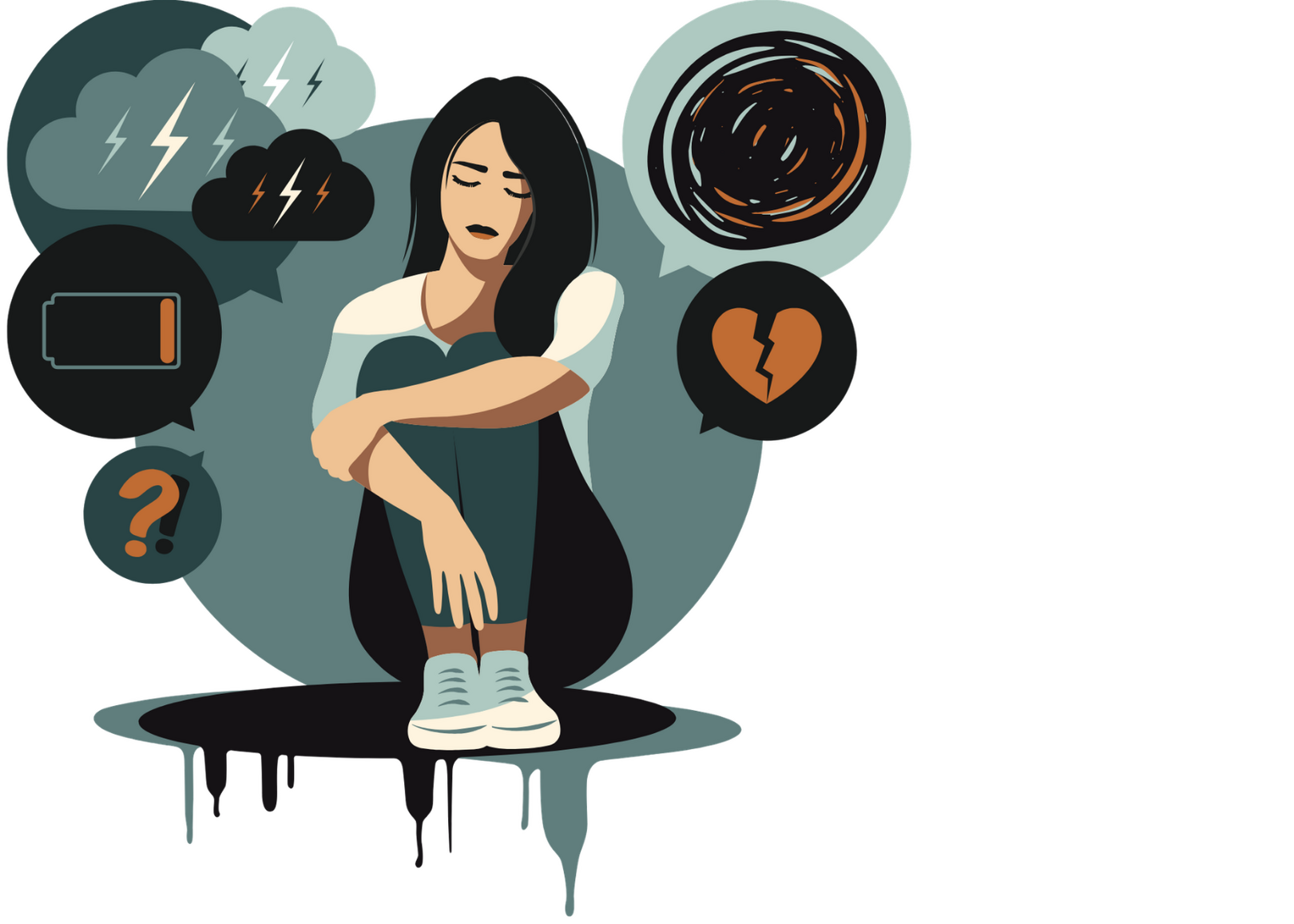 Kryzys, izolowanie się, myśli o samouszkodzeniu. Lęk, napięcie, presja szkolna, obniżony nastrój.